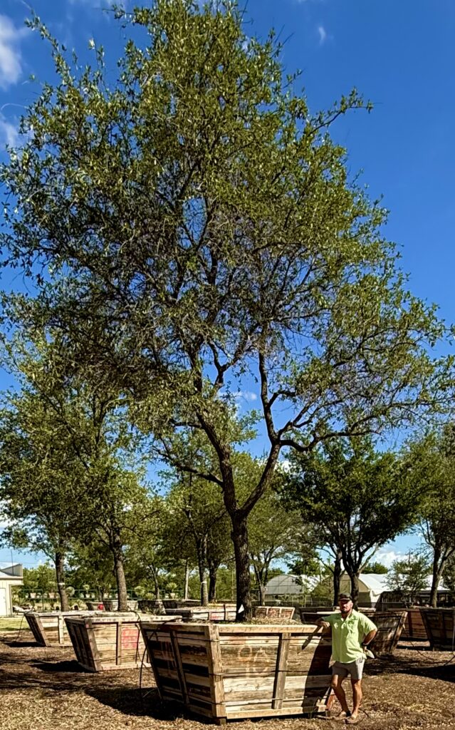 Our specimen box size trees—including huge 110” box oak trees—are staged in sturdy wooden boxes that insulate roots against Texas heat and cold. This method ensures healthier root systems and reduces stress during installation.